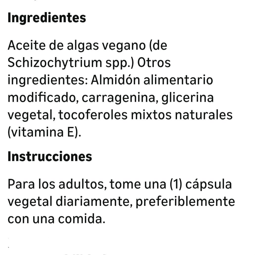 Fórmula a base de plantas: proporciona 250 mg de ácidos grasos omega-3 en cada cápsula vegetal